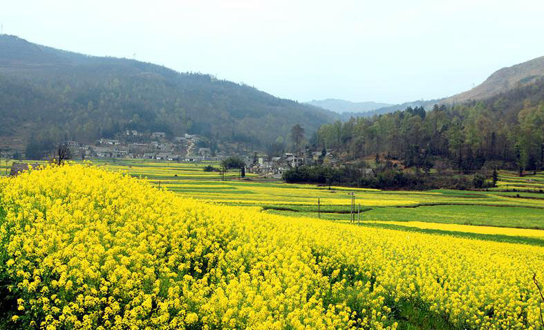 不是風花雪月的花,卻在陽春季節里造出一場鋪天蓋地的浪漫。陽春三月,天氣轉暖,在晴隆光照、碧痕、安谷、雞場一帶,公路沿線一片片的油菜花漸次綻放,散發著迷人的芳香,油菜花把大地裝點得分外妖嬈,美不勝收。萬物復蘇,陽光融融