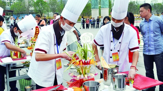 貴州省旅游學校學生在技能大賽上展示果盤雕刻技藝