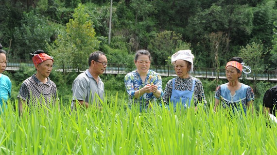 貴州省黔東南民族職業技術學院教師在田間為農民群眾培訓