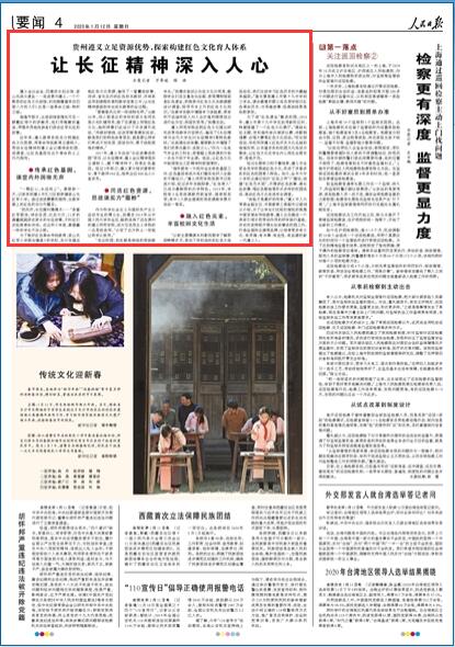 “體驗才是最好的傳承!弊窳x市人大常委會副主任、市委教育工委副書記曾潤云介紹,為了讓學生們在輕松愉悅的氛圍中接受革命傳統教育,遵義正在建設一個具有引領示范帶動作用的研學旅行基地,并依托其持續開展長征故事進校園工作,打造全國知名德育品牌,以培育更多有文化、有靈魂、有本事、有血性、有品德的新一代遵義人。