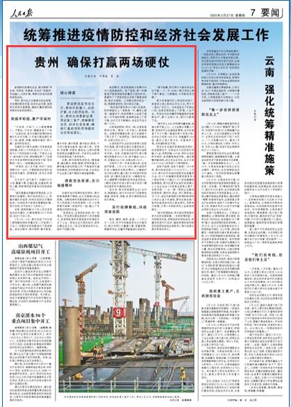 同時,貴州全力支援湖北抗擊疫情,并統籌好脫貧攻堅、經濟社會發展,堅持兩手抓兩手都要硬,確保打贏疫情防控和脫貧攻堅兩場硬仗。