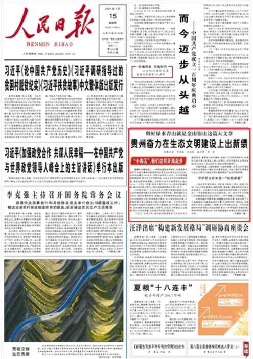 “十四五”開局之年,貴州堅決貫徹落實習近平總書記重要講話、重要指示批示精神,堅持人與自然和諧共生,牢固樹立綠水青山就是金山銀山的理念,守住發展和生態兩條底線,努力走出一條生態優先、綠色發展的新路子。