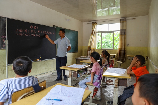 如今,相較于城鎮學校普遍實施的數字化教學,坪玉教學點仍只能依靠那一塊黑板、一支粉筆、一位教師,用最傳統的方式來進行授課。