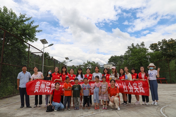 坪玉教學點師生與定點幫扶鎮遠的貴州民族大學師生合影。楊轉攝