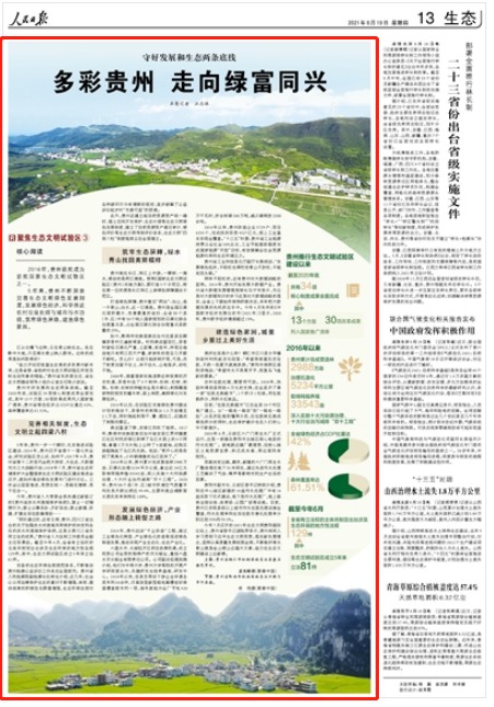 今年7月召開的2021年生態文明貴陽國際論壇上,貴州省委書記諶貽琴表示,貴州將深入學習貫徹習近平生態文明思想,落實新發展理念,堅持以高質量發展統攬全局,不斷做好綠水青山就是金山銀山這篇大文章,奮力在生態文明建設上出新績。