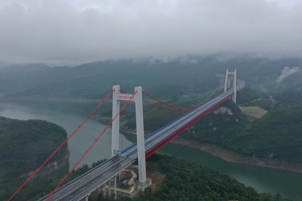 俯瞰遵余高速公路飛龍湖烏江大橋。賀春雨攝
