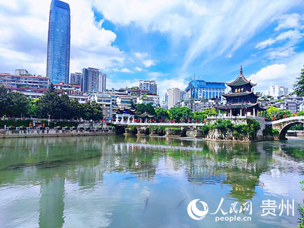 水清岸綠的南明河畔成為貴陽市民休閑好去處。人民網 唐杰攝