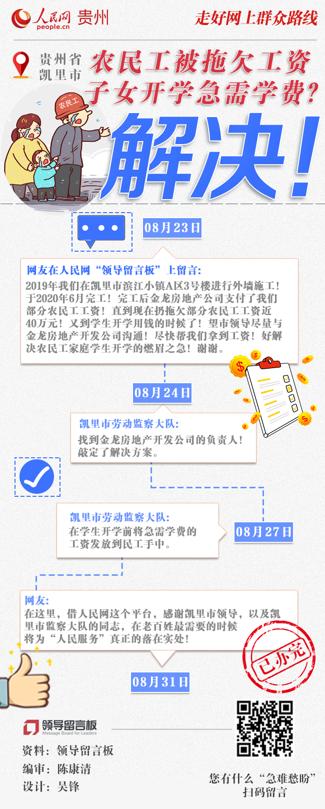 急難愁盼 | 農民工網友反映被拖欠工資,子女開學難 官方:立決!