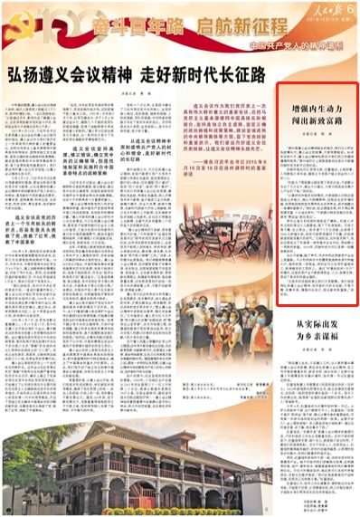 “這些年的實踐探索讓我們大受鼓舞。我們將堅持弘揚遵義會議精神,走好新時代的長征路,不等不靠、實事求是,增強內生動力,闖出新的致富路!眳撬烧f。