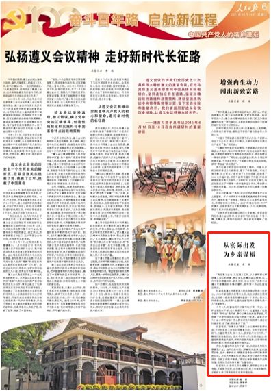 “我在遵義出生,又在遵義工作,從小就聽著長輩講遵義會議的故事,更應該弘揚遵義會議精神,在工作中做到尊重實際、聯系實際、結合實際!痹谫F州省遵義市湄潭縣抄樂鎮沙塘村,駐村第一書記杜富佳這樣說。
