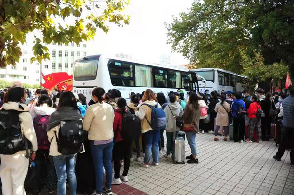 人民網貴陽10月23日電(王秀芳) 10月23日,由貴州醫科大學及附屬醫院800余人組成的醫療隊出發前往遵義,協助當地開展新冠肺炎疫情防控工作。