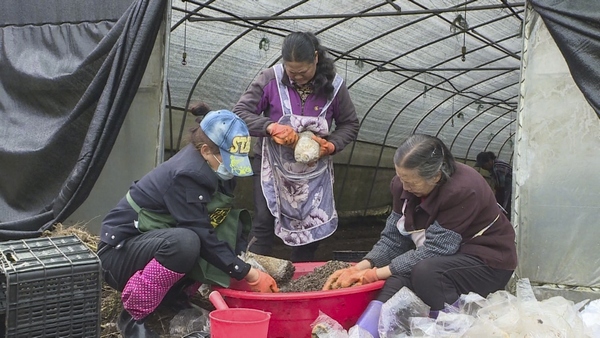 村民正在種羊肚菌。