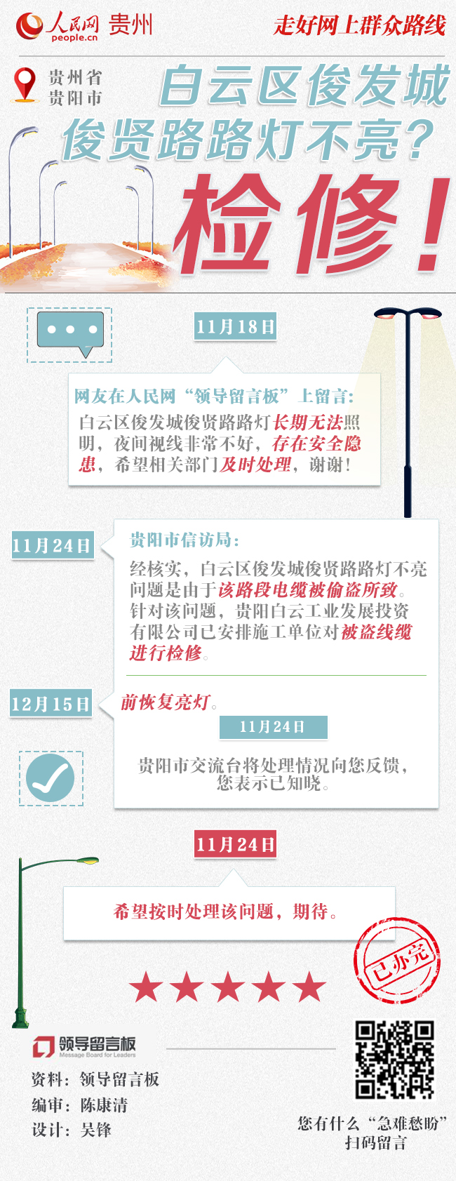 急難愁盼 | 路燈不亮?當地施工單位:檢修!