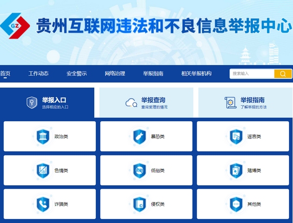 貴州互聯網違法和不良信息舉報平臺截圖。