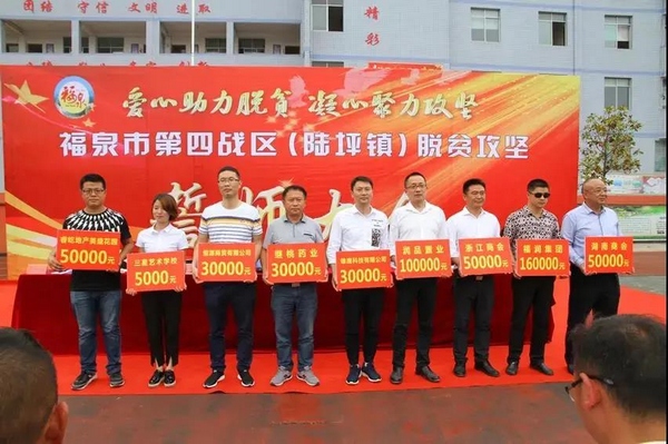 楊穎(右三)捐資助力福泉市陸坪鎮脫貧工作。
