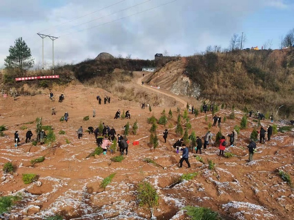 2022年春節假期后的首個工作日,干部群眾一同植樹。清鎮市自然資源局供圖