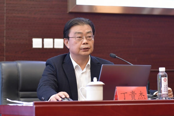 全國政協委員、民盟貴州省副主任委員、貴州省森林資源與環境研究中心主任、林學院教授丁貴杰傳達中國人民政治協商會議第十三屆全國委員會第五次會議精神。