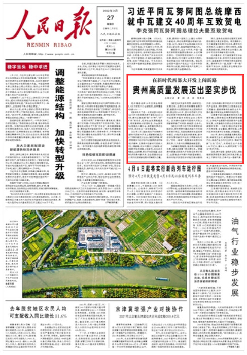 2022年1月,《國務院關于支持貴州在新時代西部大開發上闖新路的意見》(以下簡稱《意見》)出臺!兑庖姟访鞔_,深入貫徹落實習近平總書記重要講話和指示批示精神,支持貴州在新時代西部大開發上闖新路,在鄉村振興上開新局,在實施數字經濟戰略上搶新機,在生態文明建設上出新績,努力開創百姓富、生態美的多彩貴州新未來,在全面建設社會主義現代化國家新征程中貢獻更大力量。