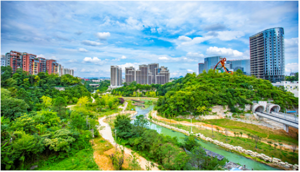 城在林中、綠帶環抱。初夏時節,貴陽雙龍航空港經濟區內,延綿15公里的河道生態景觀帶風光正好。誰也想不到,6年前,這里竟是河水污濁、臭氣熏天的景象。