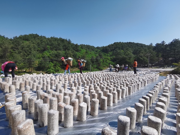 新種植擺放的菌棒。