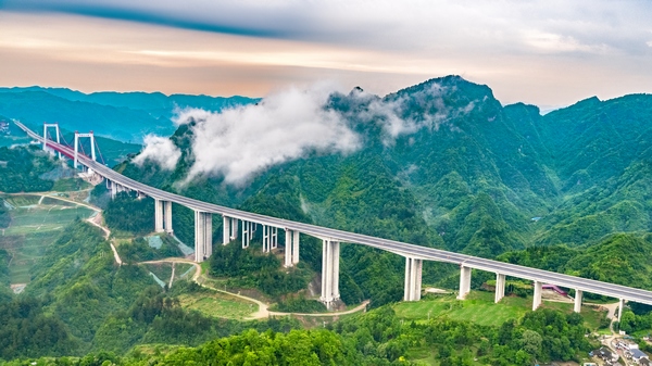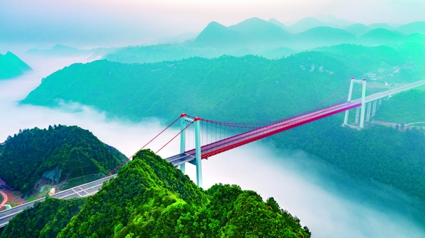 其中,陽寶山大橋為主跨650米的懸索橋,是貴州省首座六車道懸索橋;烏梅河大橋是主跨徑300米的鋼管混凝土上承式拱橋,距河面高達198米;貴定連接線的甘溪大橋是空腹式剛構橋,300米的主跨徑為同類橋梁世界第一。閆忠斌說,三座大橋分別為懸索橋、梁橋、拱橋的典型代表,且跨越陡深峽谷,峽谷中云霧繚繞,經常能看到大橋宛如巨龍,穿越云霧、若隱若現的壯觀場景。