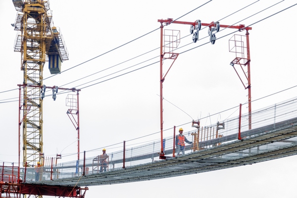 陽寶山大橋所處的獨木河大峽谷附近幾乎無路可通,項目在國內首次采用空中紡線法架設主纜,解決了山區場地狹小、道路運輸的難題,且提前半個月完成主纜架設,索股安裝精度達到三萬分之一,遠高于萬分之一的控制標準,該工藝將有效解決運輸條件差的山區懸索橋和超大跨徑(2000米以上)懸索橋主纜施工難題,填補了國內相關技術空白,處于國際領先水平。貴黃高速龍昌隧道在行業內率先采用“9+N”全工序成套機械化隧道施工新工藝,配備“智能三臂鑿巖臺車”等智能設備,大幅減少人工操作,保障安全質量,提高施工效率,贏得各界觀摩好評。甘溪大橋針對空腹式鋼構新橋型和同類橋梁世界最大跨徑的挑戰,創新施工方案,即減少投入縮短工期,又提升安全質量水平。烏梅河特大橋主拱纜索安裝扣掛系統采用北斗定位信息技術,有效提升了拱肋安裝精度。