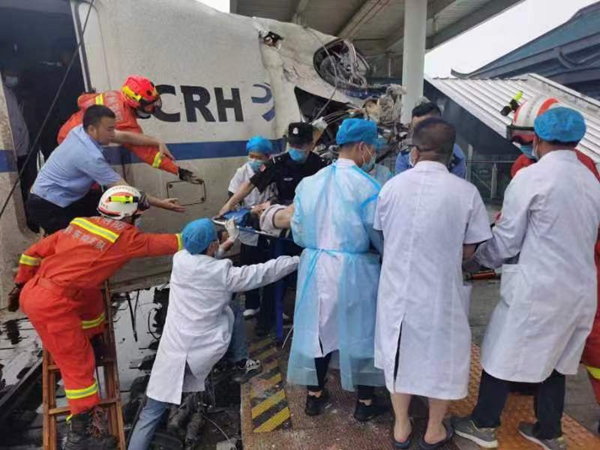 鐵路部門迅速啟動應急預案,受傷人員已送往榕江縣醫院進行全力救治,受傷旅客和列車員均已得到妥善治療,沒有生命危險,動車司機不幸死亡。列車上其他136名旅客已安排轉運疏散。目前,現場救援工作已全面展開,事故原因正在調查之中。