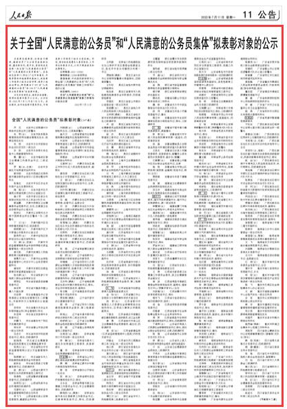 關于全國“人民滿意的公務員”和“人民滿意的公務員集體”擬表彰對象的公示