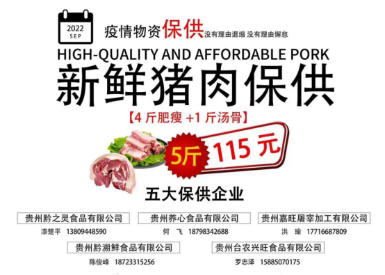 為保障花果園片區豬肉供給,讓居民盡快吃上“放心肉、平價肉”,9月14日,貴陽市農業農村局聯動南明區農業農村局,明確5家生豬售賣企業入駐花果園定點區域開展豬肉配送工作,確保有序供應。