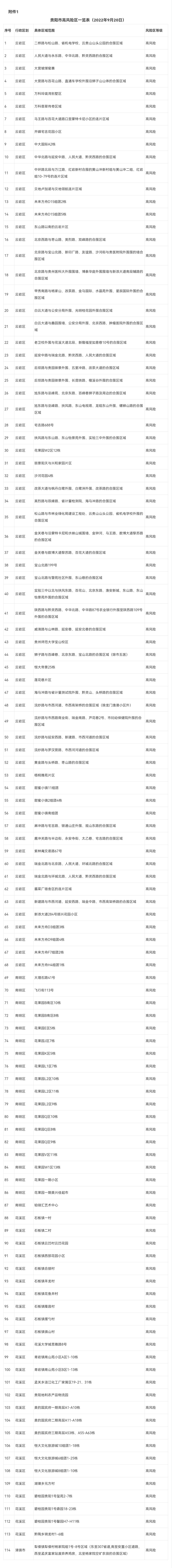 附件:1.貴陽市高風險區一覽表(2022年9月20日)