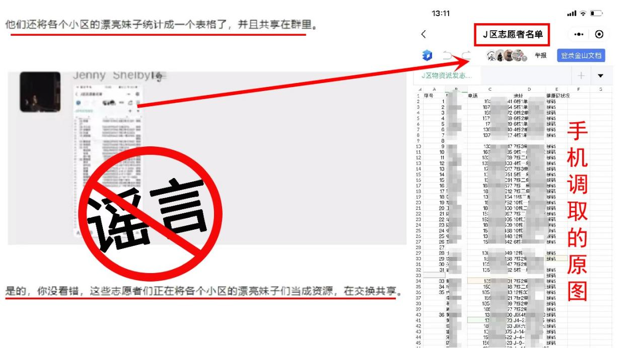 據付某某交代,他發給謝某某的報名表是自己在其他群里轉發而來,自己沒有介紹其他人當過志愿者,且其也無介紹推薦其他人當志愿者的能力,轉發志愿者報名表也是吹牛顯示自己的能力。經調查證實,網上傳播的所謂漂亮女生的個人信息表,實際是某社區志愿者名單統計表,相關信息系謠言。