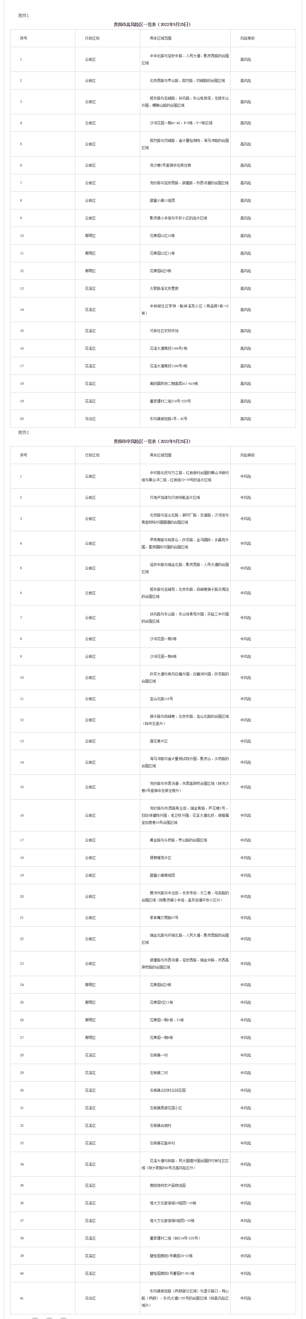 1.貴陽市高風險區一覽表(2022年9月25日)