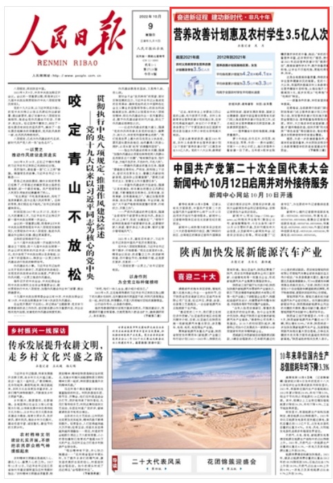 營養改善計劃惠及農村學生3.5億人次(奮進新征程 建功新時代·非凡十年)