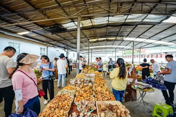 谷腳鎮的觀音村入選貴州“第三批鄉村旅游重點村”,森林覆蓋率達85%。因盛產野生菌,素有“黔中第一菌”的美譽。走進觀音村野生菌交易市場,紫花菌、大腳菇、雞縱菌、鵝肝菌、牛蹄菌、黃石菌等各類野生菌一應俱全,吸引了不少省內外游客前來購買。