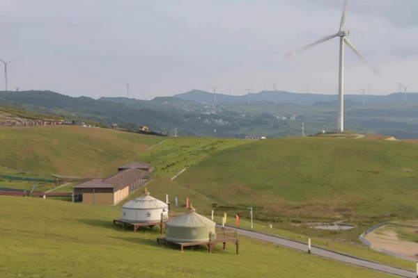 龍里油畫大草原既有貴州高原的山巒疊峰,又有北方草原的悠遠空曠。群山起伏,藍天白云綠草相接,再配上落日殘陽,旋轉的風車,活脫脫一幅唯美的草原油畫。