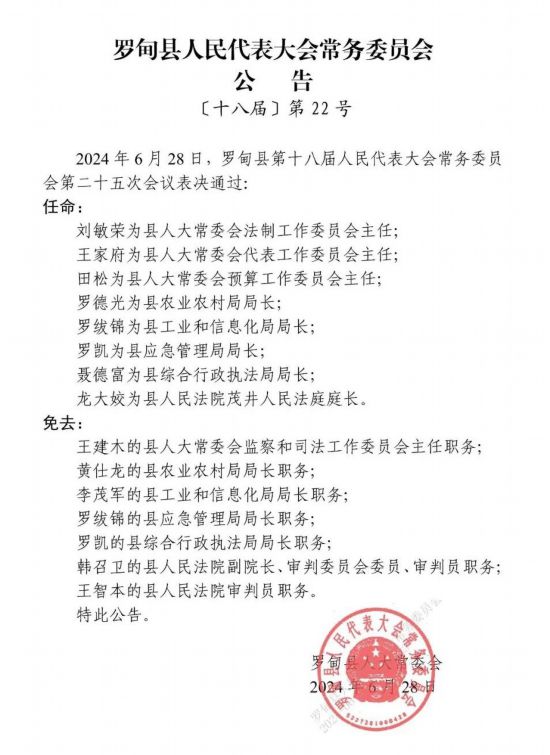 黔南州羅甸縣人民代表大會常務委員會任免職名單