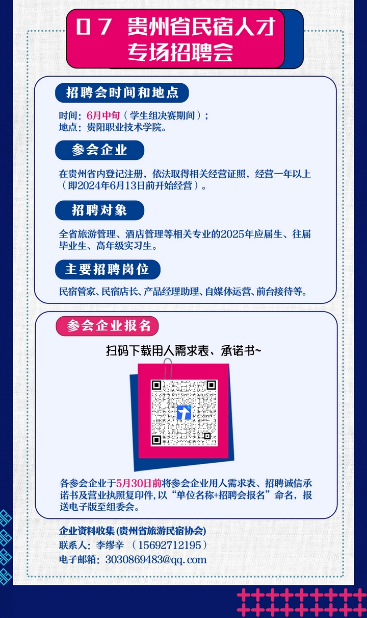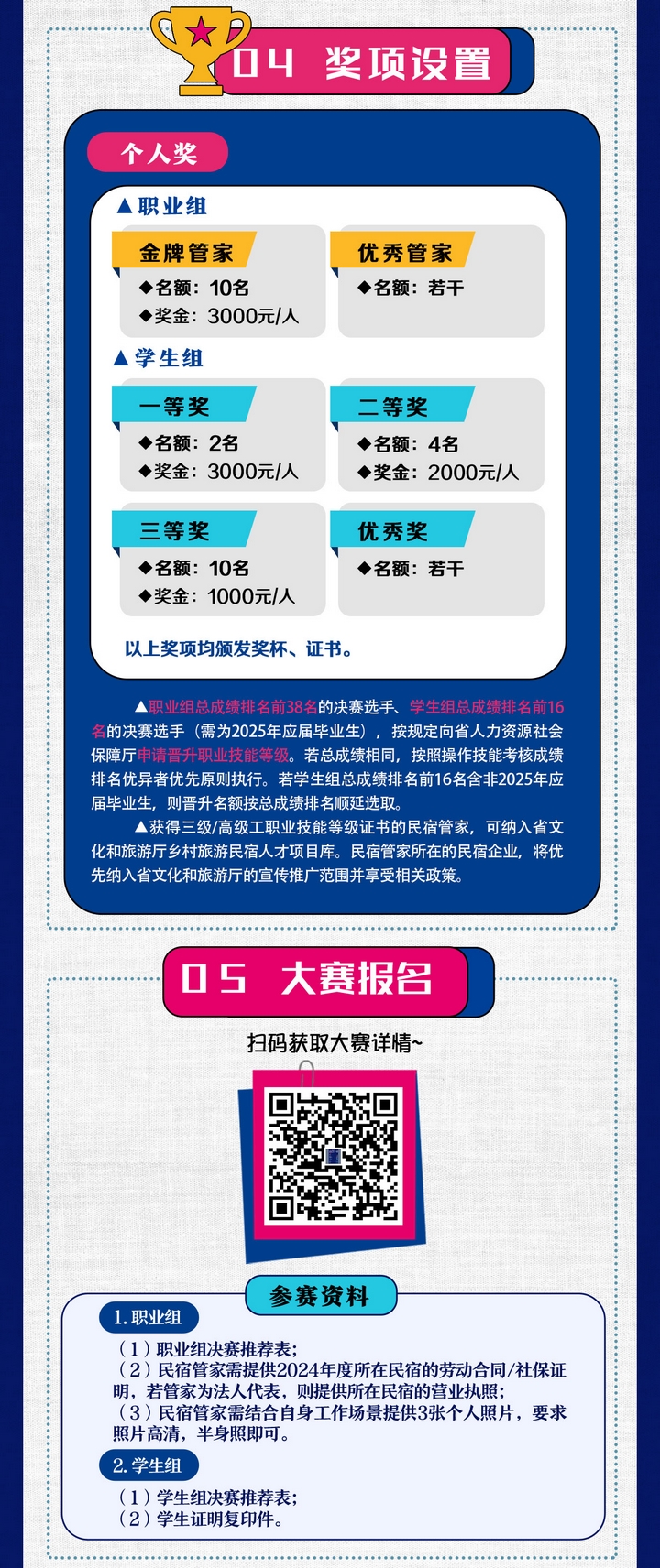 值得一提的是,本次大賽決賽期間,還將同步舉行首屆貴州省民宿人才專場招聘會,面向全省旅游管理、酒店管理等相關專業的2025年應屆生、往屆畢業生、高年級實習生?,F場將邀請近百家貴州省民宿經營主體提供民宿管家、店長、產品經理助理、自媒體運營、前臺接待等多個招聘或實習崗位。(圖/文 貴州省文化和旅游廳)