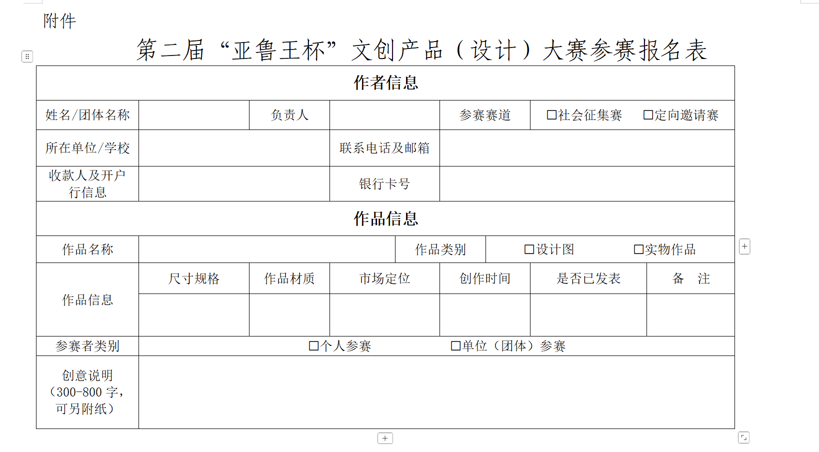 參賽人員如實填寫報名表,作者信息(如:姓名、聯系方式、電子郵箱、所在單位/學校等),作品信息(如:作品名稱、尺寸規格、制作材質、市場定位、創意說明等),詳見附件,定向邀請賽參賽學生需出具學校相關證明材料。