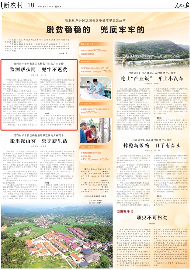 畢節市有200多萬脫貧人口,當地建立健全防止返貧致貧動態監測和幫扶機制,緊盯每一個有返貧致貧風險的群眾,線上聯動監測、線下全面排查,做到早發現、早干預、早幫扶。日益完善的監測幫扶網,牢牢兜住不發生規模性返貧致貧的底線。