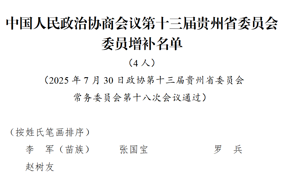 貴州省政協十三屆常委會第十八次會議審議通過有關人事事項