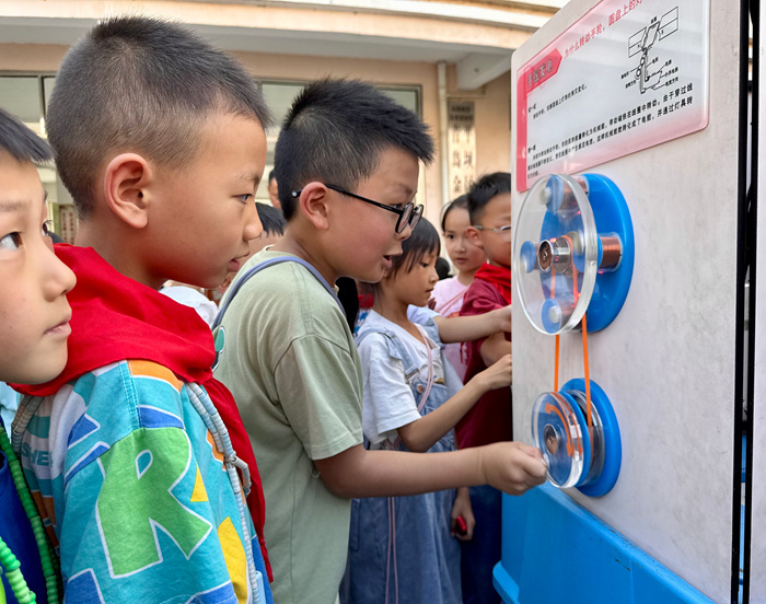 “這些科普展品以前都是在電視上和書本里看到,這是我第一次近距離接觸,覺得真有趣呢?!睂嶒炐W二年級學生周詩禹說。