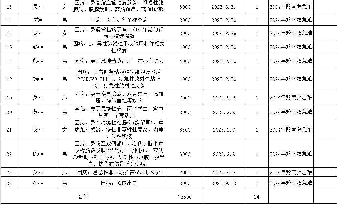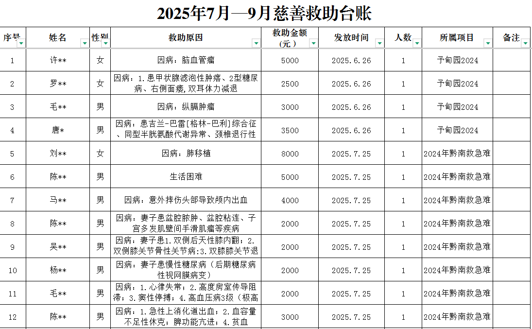 羅甸縣2025年度7月—9月慈善救助臺賬